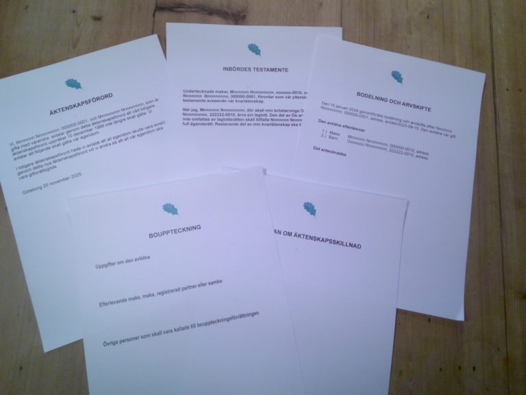 Arv, Bouppteckning, Bodelning, Bostad, Giftas, Gåvobrev, Köpeavtal, Sambofrågor, Skiljas, Testamente